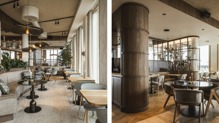 Voor de kleuren is er vooral gekozen voor strandkleuren, zoals warm beige en het groen van de duingrassen, zonder dat het te veel een Beachclub werd. Er zijn in het hotel verschillende hoekjes ingericht waar je kan loungen, koffie drinken aan de bar of ontbijten. Ook is er een shop-in-shop.